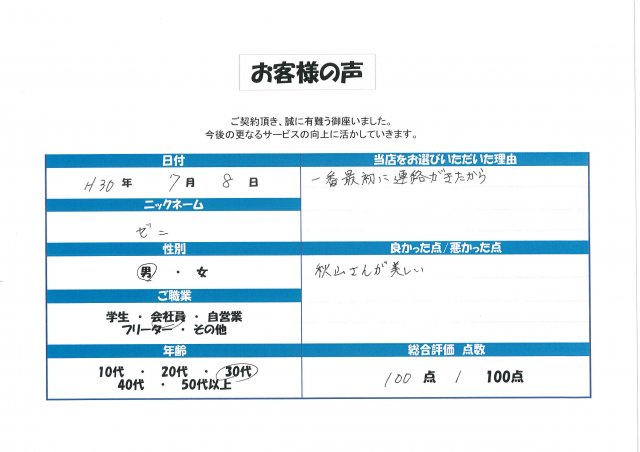 お急ぎとのことで、当日中にご契約まで出来てよかったです^^